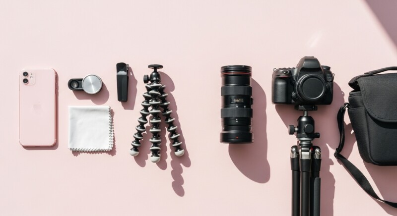 結論として、スマホ写真は「本体+小物数点」、一眼レフ/ミラーレスは「ボディ+レンズ+周辺機器」と、必要なもののボリュームと自由度が大きく違います。