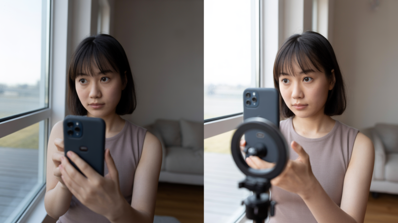 肘をテーブルにつける・壁にもたせる・家具の上にスマホを置くなどの工夫でも、ブレ対策の効果は十分得られますが、継続的に撮るならミニ三脚導入がおすすめです。
