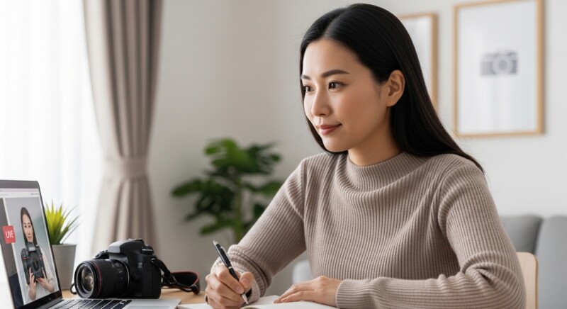 対面教室との大きな違いは「移動が不要」という点だけではありません。自宅の照明や窓の光を使いながら撮影できるため、実際の生活環境に近い条件でカメラ操作を学べるのがオンラインレッスンの強みです。また、録画機能を活用して後から見返せる教室も多く、その場で理解しきれなかった部分を自分のペースで復習できます。