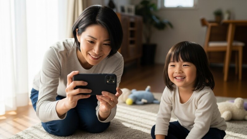 - 目線の高さが最重要:子どもと同じ高さにスマホを構えることで、表情がしっかり見える