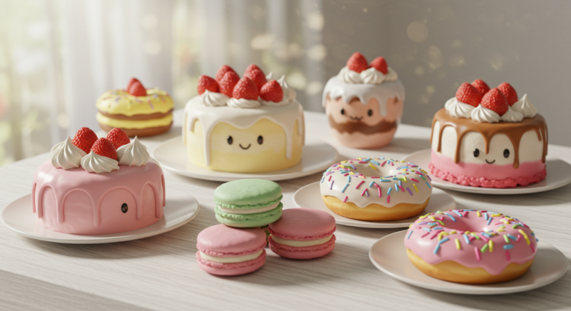 「可愛い」を表現したい場合、淡い色合いと柔らかな光の組み合わせが非常に効果的です。強い直射日光ではなく、レースのカーテン越しのような拡散された柔らかな光を選ぶと、スイーツの質感を優しく描き出すことができます。朝の9時〜10時頃、または午後の3時〜4時頃の光は、特に柔らかく美しいとされています🌅