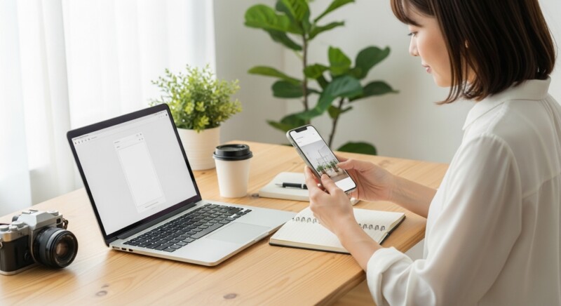 SNS用に写真をアップロードする直前には、ファイルサイズを小さくし、ウェブ表示に最適な解像度で書き出す作業が必要です。この工程を適切に行わないと、画質が粗くなったり、SNS側の自動圧縮によって意図しない劣化が発生したりします。